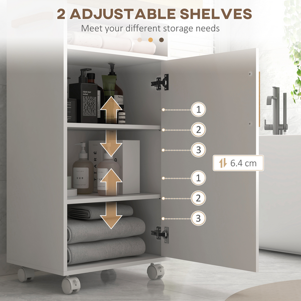 - Four wheels and handle: Easy to move this bathroom storage cabinet - great for when it's heavy. Two brakes so it stands in place.