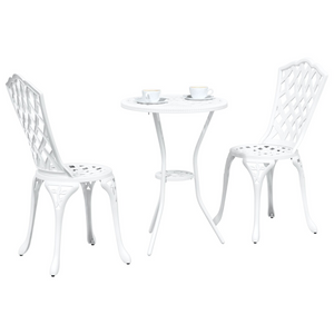 This Outdoor Dining Set for 2 creates a warm atmosphere, ideal for a romantic meal or a laid-back brunch on your balcony or garden. The set, featuring a round table and two stylish chairs, beautifully merges traditional elegance with modern strength, making it perfect for enhancing your outdoor space with both style and purpose. The stylish design of this set boosts any outdoor space, making it perfect for family and friend get-togethers. Made from strong aluminium, each piece promises durability, ensuring satisfaction even in outdoor settings. The comfy chair design offers great relaxation, making meal times enjoyable. Cleaning is straightforward, which means more time enjoying outdoor dining. The complete set comes with a matching table and two chairs, providing all you need for alfresco dining.