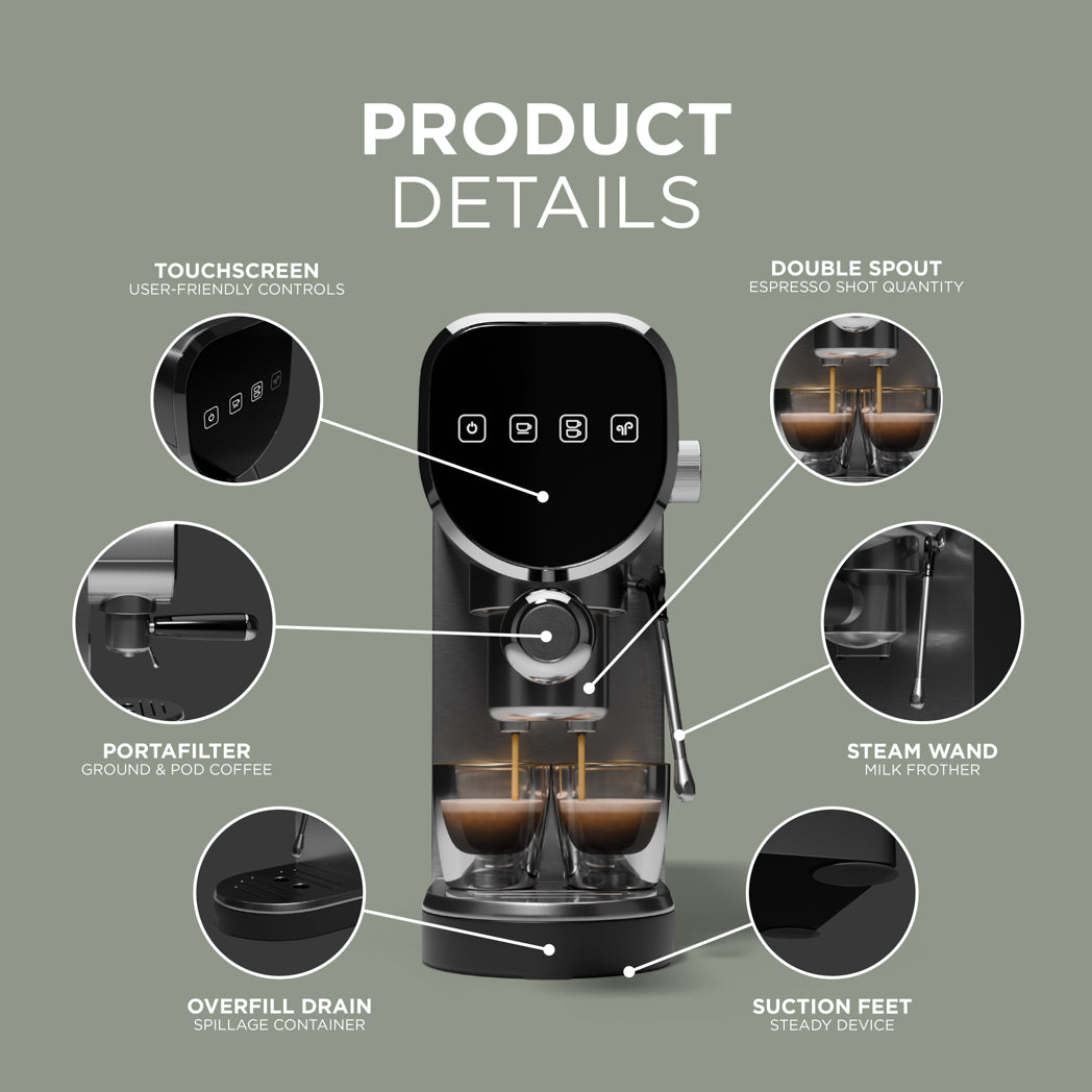 When it comes to design, we’re diligent in bringing you smart, durable builds. Our espresso coffee machine has a full metal housing for a long-lasting, modern and sleek aesthetic. The portafilter is made with die-cast aluminium, and the 0.9L water tank is detachable for easy cleaning.