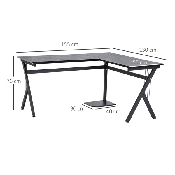 - L-SHAPED CORNER DESIGN: The space-saving, wrap-around style offers plenty of surface space for your home and office work related items, or gaming activities.