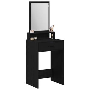 This dressing table sports a sleek black oak look, adding a modern twist to any bedroom while being super practical. Its compact yet functional design fits snugly into smaller spaces without skimping on storage or usability. u003culu003eu003cliu003eIntegrated Mirror: The large mirror shows your reflection clearly, making it fab for personal grooming and makeup application.u003c/liu003eu003cliu003eSpacious Drawers: Comes with a traditional pull drawer, perfect for keeping cosmetics, accessories, and personal stuff tidy.u003c/liu003eu003cliu003eDurable Materials: Made from engineered wood and synthetic materials, ensuring it lasts and looks smart with various interior styles.u003c/liu003eu003cliu003eCompact Design: Measuring 50 x 41 x 140 cm, it’s just right for smaller bedrooms and flats while still offering solid workspace.u003c/liu003eu003cliu003eEasy Maintenance: The matte finish and smooth surfaces make for easy cleaning, keeping this table stylish and functional without too much hassle.u003c/liu003eu003c/ulu003e