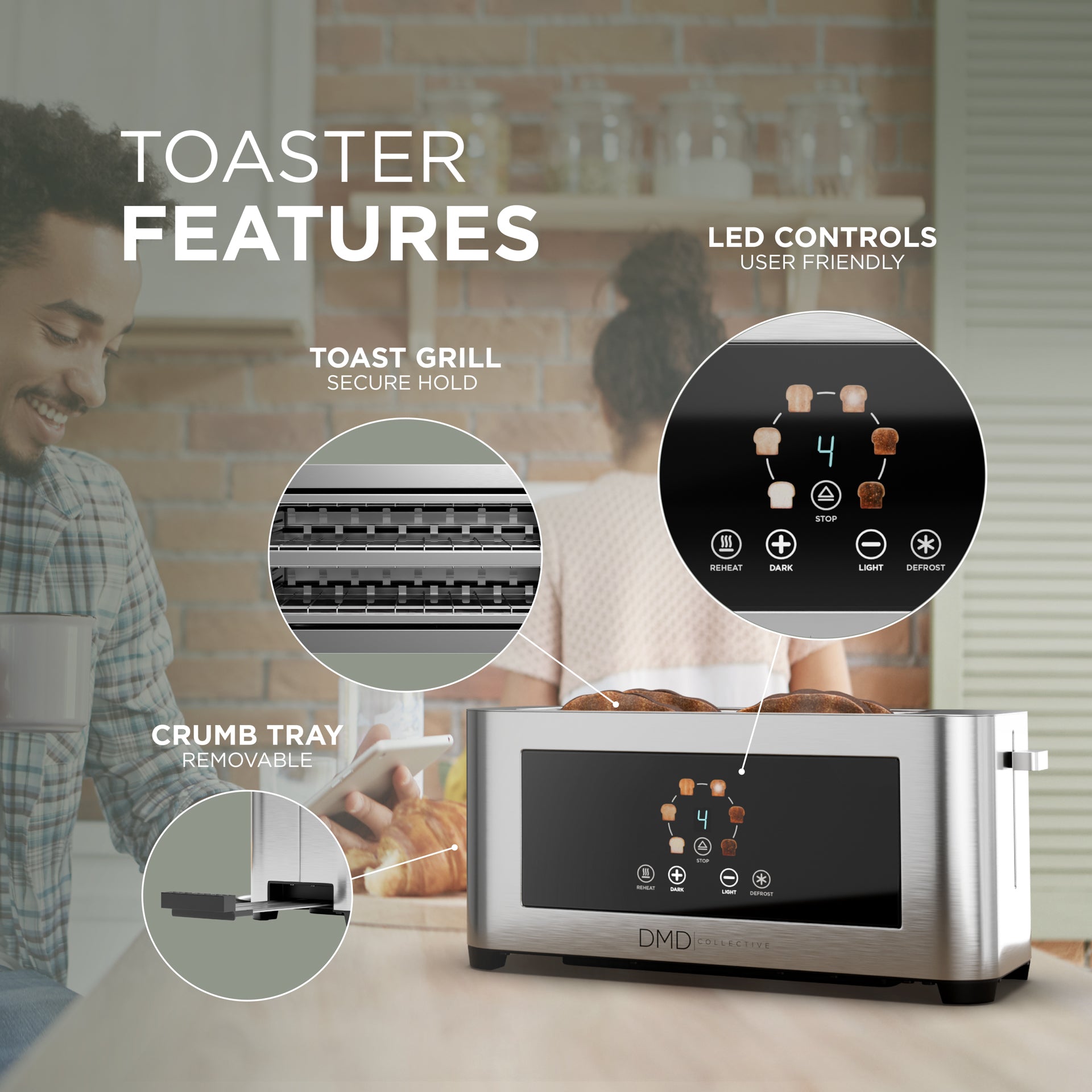 The LED display and simple controls make operation easy to understand at a glance, allowing you to toast, reheat or defrost bread without confusion. This is especially useful during busy mornings or in shared kitchens where quick, clear control matters.