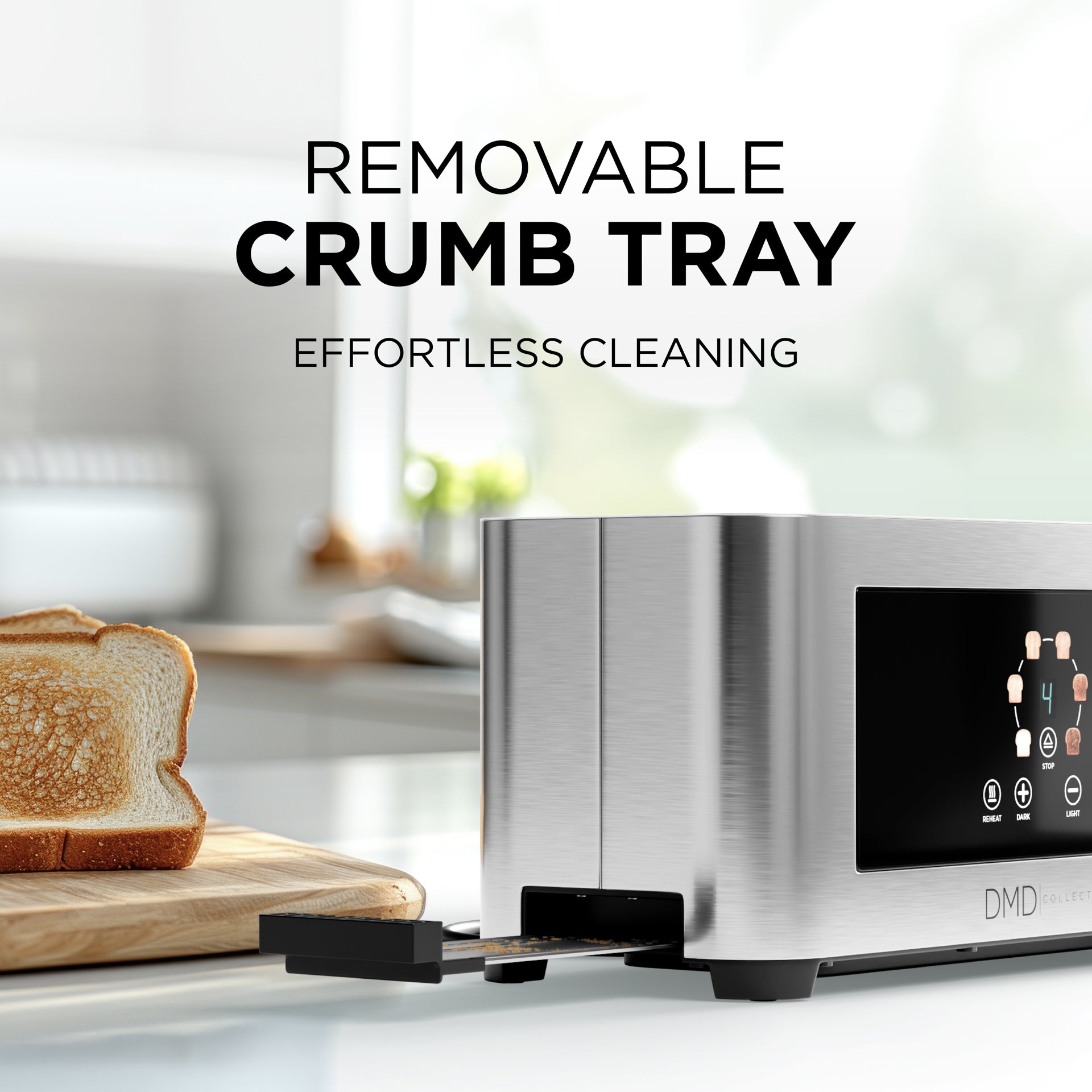Cleaning is often where toasters become inconvenient. Crumbs build up quickly and can be difficult to manage. With a removable crumb tray, debris is collected at the base and can be emptied easily, so you keep your worktop clean without turning the appliance upside down.